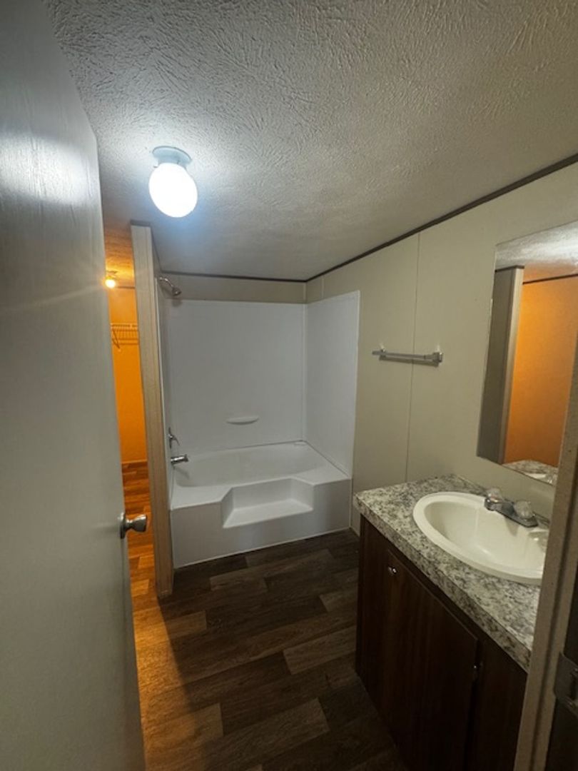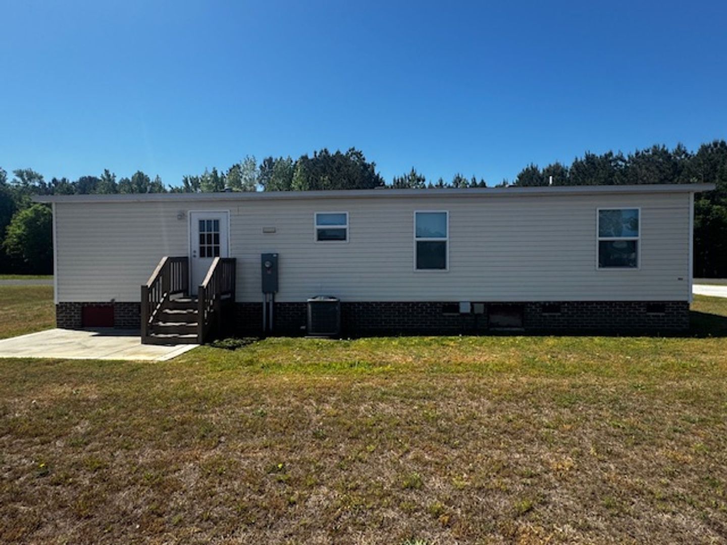3-Bedroom 2-bath double wide with stove, refrigerator, washer/dryer hook ups, central AC/Heat, concrete drive, brick underpinning, back patio, no carpet